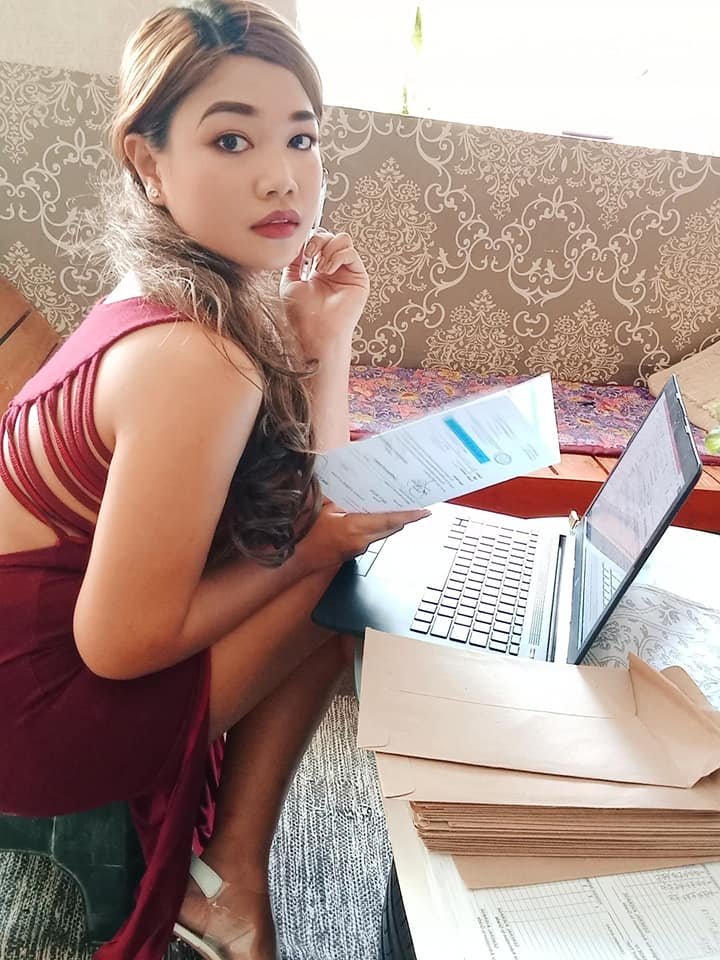 Teacher Kristhel posed with some forms and her laptop as instructed, but her cocktail dress really steals the show.