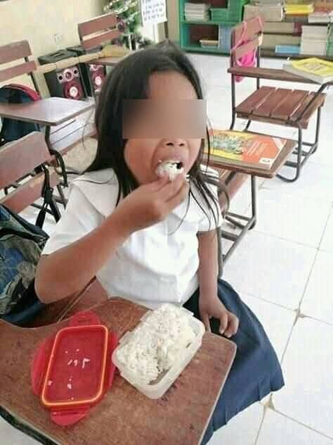 Her family can’t afford to send her to school with viand, but one girl who happily eats rice as she attends school every single day is going viral. Netizens praised this young girl for still wanting to go to school even if she doesn’t have viand to eat, just rice.