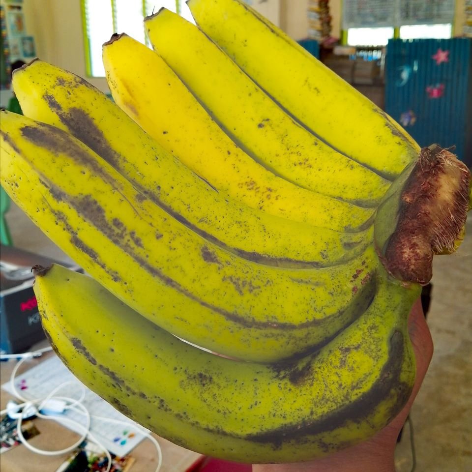 As Sir Ryan went back to discussing a lesson in English, he noticed that Manuel was busy with something in his bag. He called the kid, seeking his attention so that he would listen in class, but was surprised when the child brought out a bunch of bananas from his bag.
