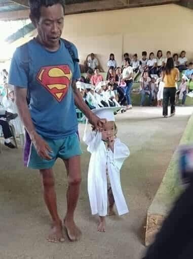 Even that toga the little girl is wearing must have been rented, but netizens were happy that the dad got her the toga even if she didn’t have shoes or even slippers on.