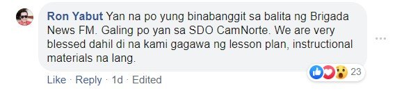 “We did that initiative para matulungan yung aming mga guro at ma- ensured that we will really deliver the quality of educational services that our learners deserve, kaya magpo- focus na lang talaga sila on delivering the lesson”, said Merioles