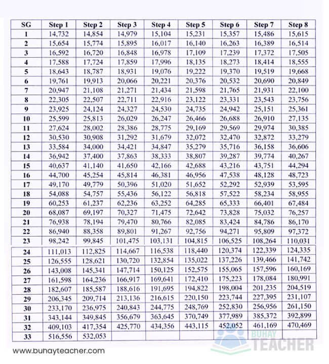 Meanwhile, here is another table we created that shows the salary increase on every tranche of the SSL V. An obvious observation is that the higher the teaching position is, the higher the increase it gets over each tranche. As seen in the table below, an entry-level Teacher I gets a total of P6,870 pay hike in the span of three years while a Master Teacher III is assured of P16,932 pay hike after the third tranche of SSL V is implemented.