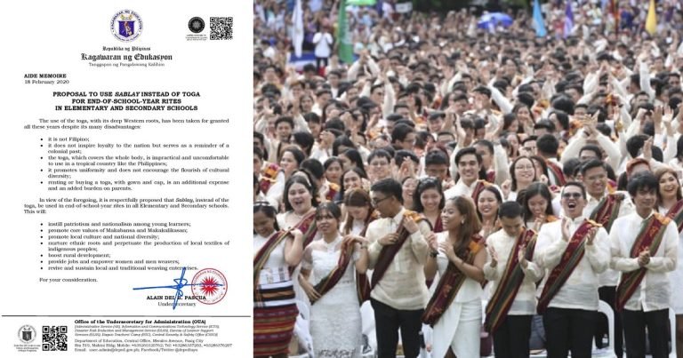 When it comes to the graduation rites in the Philippines, students are expected to wear toga over their semi-formal clothes. But an official of the Department of Education (DepEd) thinks that such is ‘too westernized’ and must be replaced by…