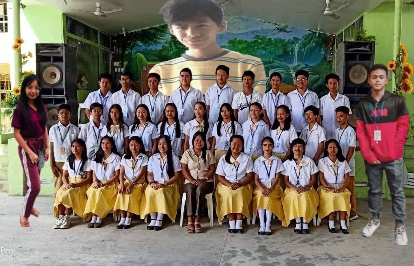 At Muzon National High School in San Jose del Monte, Bulacan, there were three absent students when the class of teacher Chona Isabel Manaois Castillo had their photo taken. The teacher wanted to make sure that everyone is included in the class picture, of course; thus, she decided to remedy the picture with some edits.
