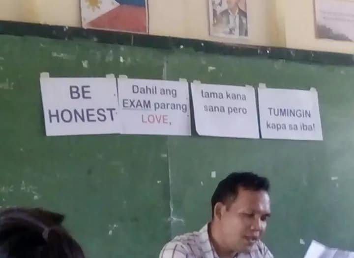 “BE HONEST,” the teacher reminded his class, before adding, “Dahil and EXAM parang LOVE; tama ka na sana pero TUMINGIN ka pa sa iba!” Ouch.